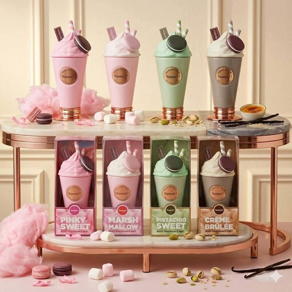 Yummy Mist, c'est la marque de brumes corporelles aux fragrances gourmandes qui font craquer. Formulées avec soin, nos brumes laissent un voile de senteur délicat et longue durée sur votre peau. Parce que prendre soin de soi doit rester un vrai plaisir.